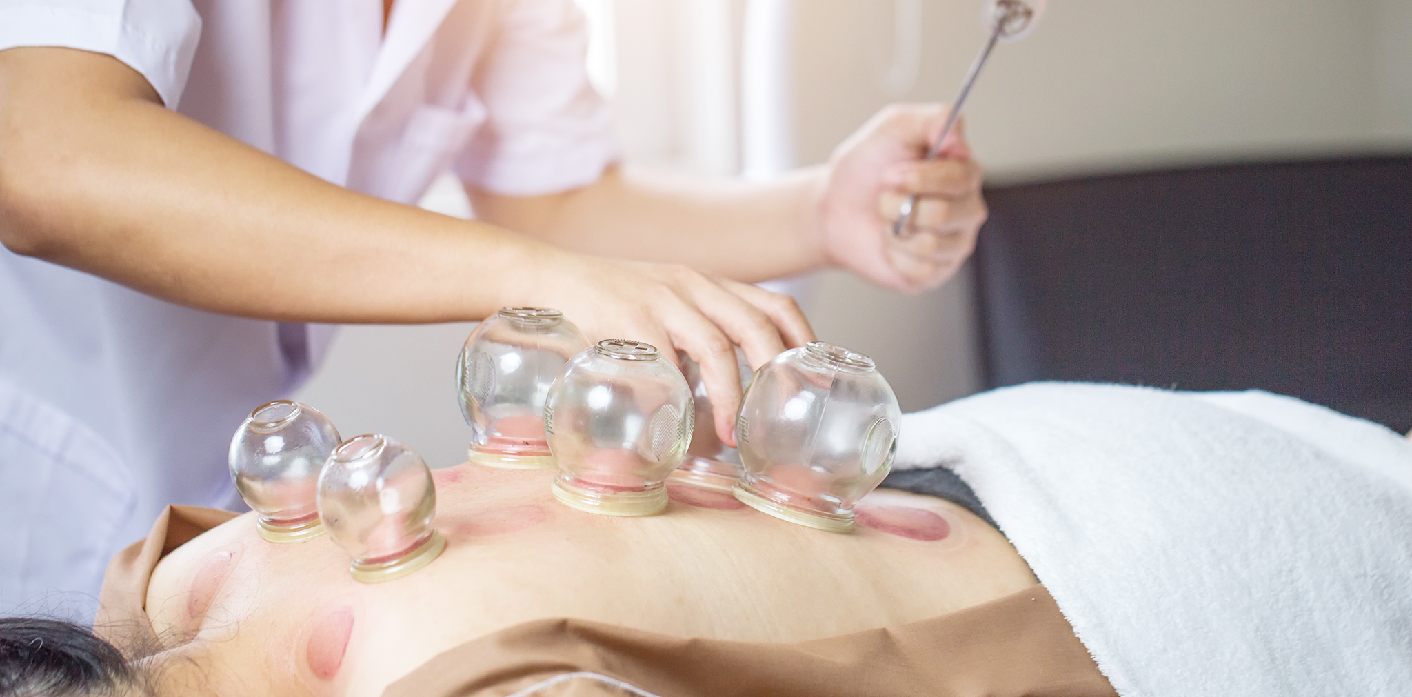 While placing the cups on acupoints during a TCM Cupping session, the produced vacuum creates a suction effect that dilates pores, mobilise Qi and blood flow, unblocks meridians, and normalises visceral functions; thus, achieve the goal of disease prevention and treatment.